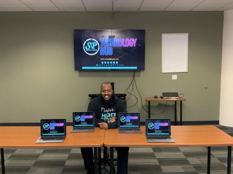 Minister Dallas has a history of using technology to connect faith and the community, dating all the way back to his freshman year at Voorhees University. The photo on the left, shows him gifting 50 laptops to the local high school on behalf of Voorhees University, reflects his commitment to bridging the digital divide and providing educational opportunities to the community. Using technology as a tool for outreach and support is a powerful way to make a positive impact.
